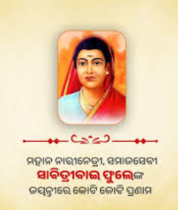 ଆସନ୍ତୁ ସମସ୍ତେ ଶିକ୍ଷିତ ହେବା ଓ ଅନ୍ୟକୁ ଶିକ୍ଷିତ କରିବା।”ସାବିତ୍ରୀବାଇ ଫୁଲେ (Savitribai Phule) ଥିଲେ ଜଣେ ଭାରତୀୟ ସମାଜ ସଂସ୍କାରକ, ଶିକ୍ଷାବିତ୍ ଏବଂ କବି। ତାଙ୍କୁ ଭାରତର “ପ୍ରଥମ ମହିଳା ଶିକ୍ଷୟିତ୍ରୀ” ଭାବରେ ସମ୍ମାନିତ କରାଯାଏ। ଭାରତରେ ମହିଳା ଶିକ୍ଷା ଏବଂ ନାରୀ ଅଧିକାର କ୍ଷେତ୍ରରେ ତାଙ୍କର ଅବଦାନ ଅତୁଳନୀୟ।