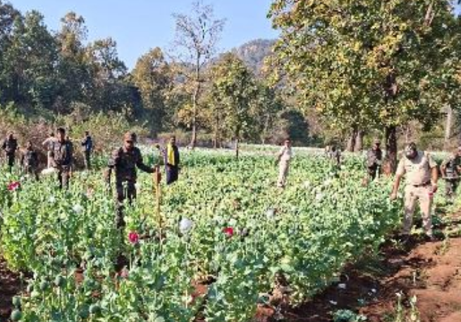 କାର୍ଯ୍ୟାନୁଷ୍ଠାନ: ପ୍ରାୟ ୩ ଏକର ଜମିରେ ହୋଇଥିବା ବେଆଇନ୍ ଅଫିମ ଚାଷକୁ ଧ୍ୱଂସ କରାଯାଇଛି।