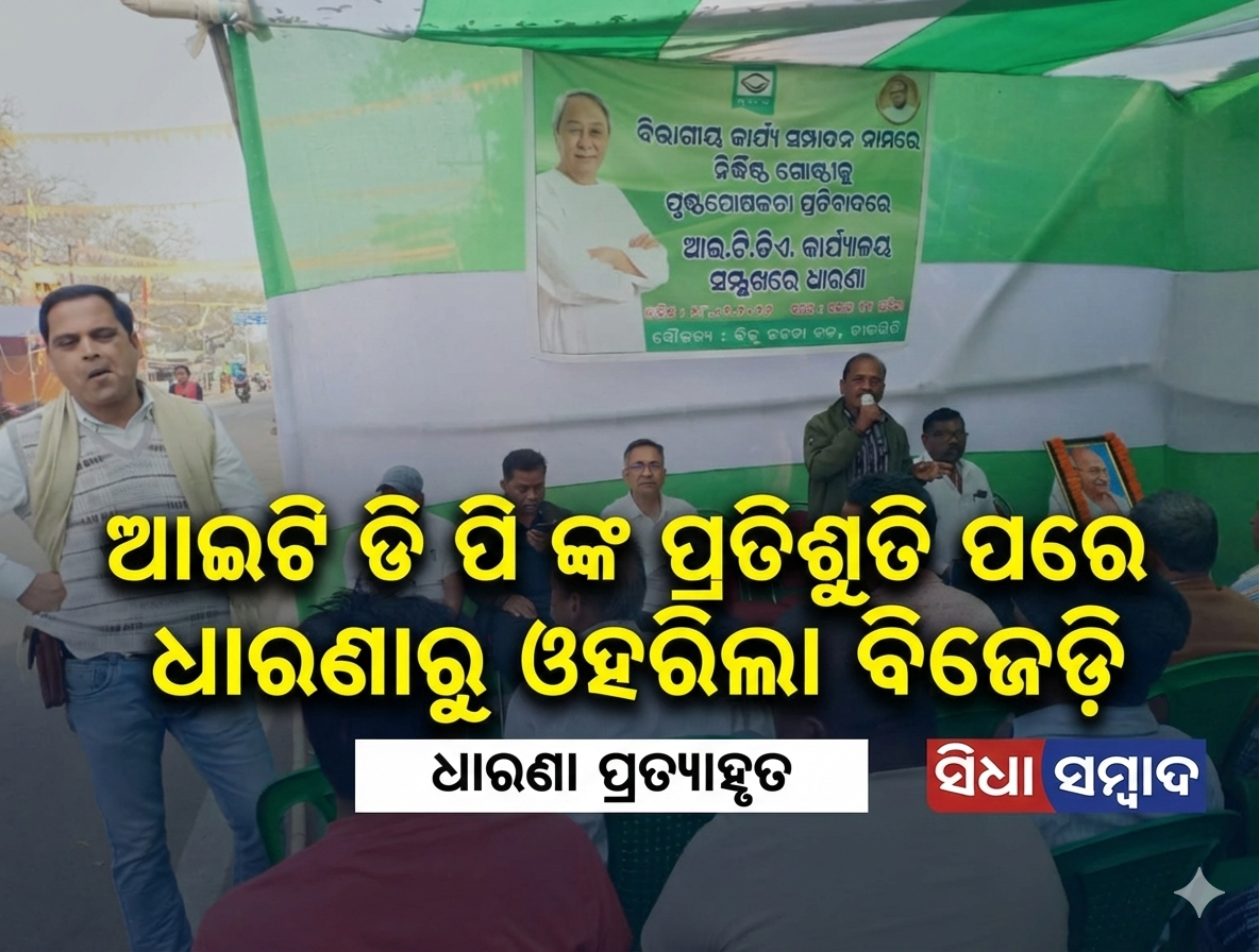 ବିଭାଗୀୟ କାର୍ଯ୍ୟ ସମ୍ପାଦନା ନାମରେ ନିର୍ଦ୍ଧିଷ୍ଟ ଗୋଷ୍ଠୀ ପୃଷ୍ଠପୋଷାକତା କରି ଅର୍ଥ ହରି ଲୁଟ ପ୍ରସଙ୍ଗ ——- ଆଇଟି ଡି ଏ ପିଏ ଙ୍କ ପ୍ରତିଶ୍ରୁତି ପରେ ଧାରଣାରୁ ଓହରିଲା ବିଜେଡ଼ି।